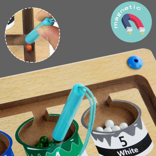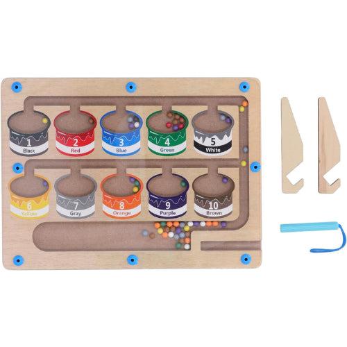 The Magnetic Color and Number Maze is an engaging, educational toy designed to help children develop their color recognition, number identification, and fine motor skills. Using a magnetic wand, kids can move colorful beads through the maze, learning to navigate through numbers and colors as they play. Perfect for building cognitive skills, this interactive game keeps children entertained while they explore early math concepts.