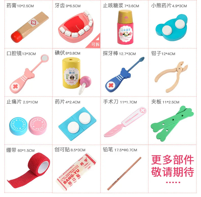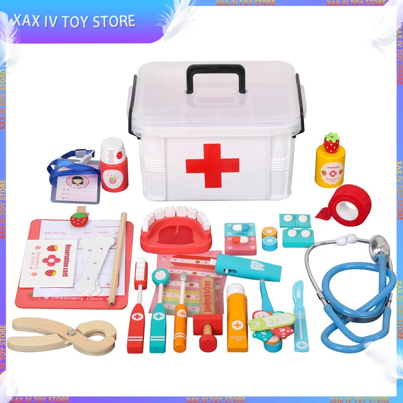 - Complete 20-Piece Set – Includes a stethoscope, syringe, thermometer, bandages, medicine bottles, and more.