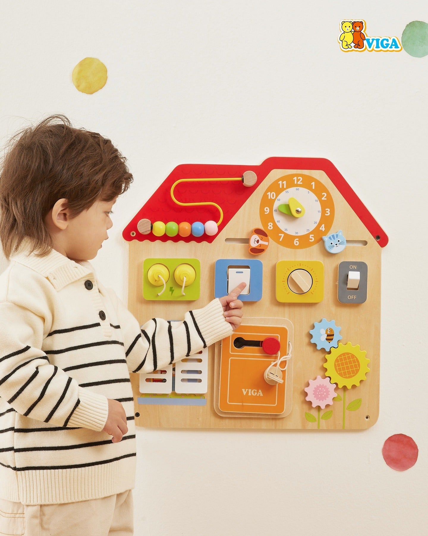 - 🔵 Montessori active board – House from VIGA Toys