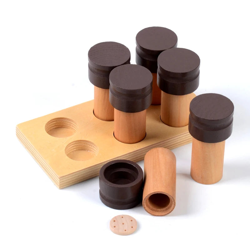 Enhance sensory exploration with the Montessori Smell Cylinder Boxes, a hands-on educational tool designed to develop olfactory (smell) discrimination skills in young learners.
