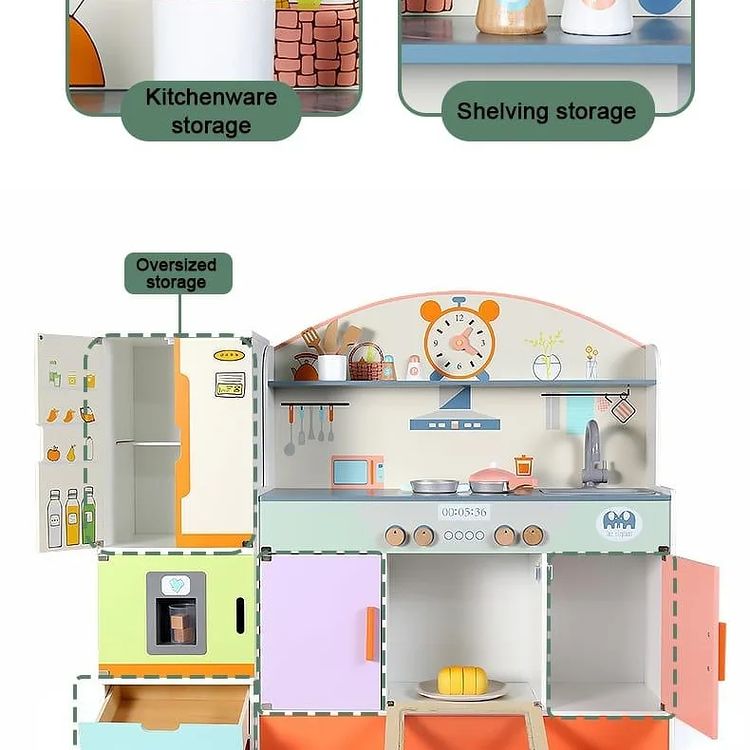 - Interactive Play Elements – Features knobs, doors, and shelves for realistic fun.