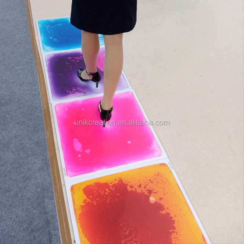 - Set Includes: 4 square color-changing liquid floor tiles