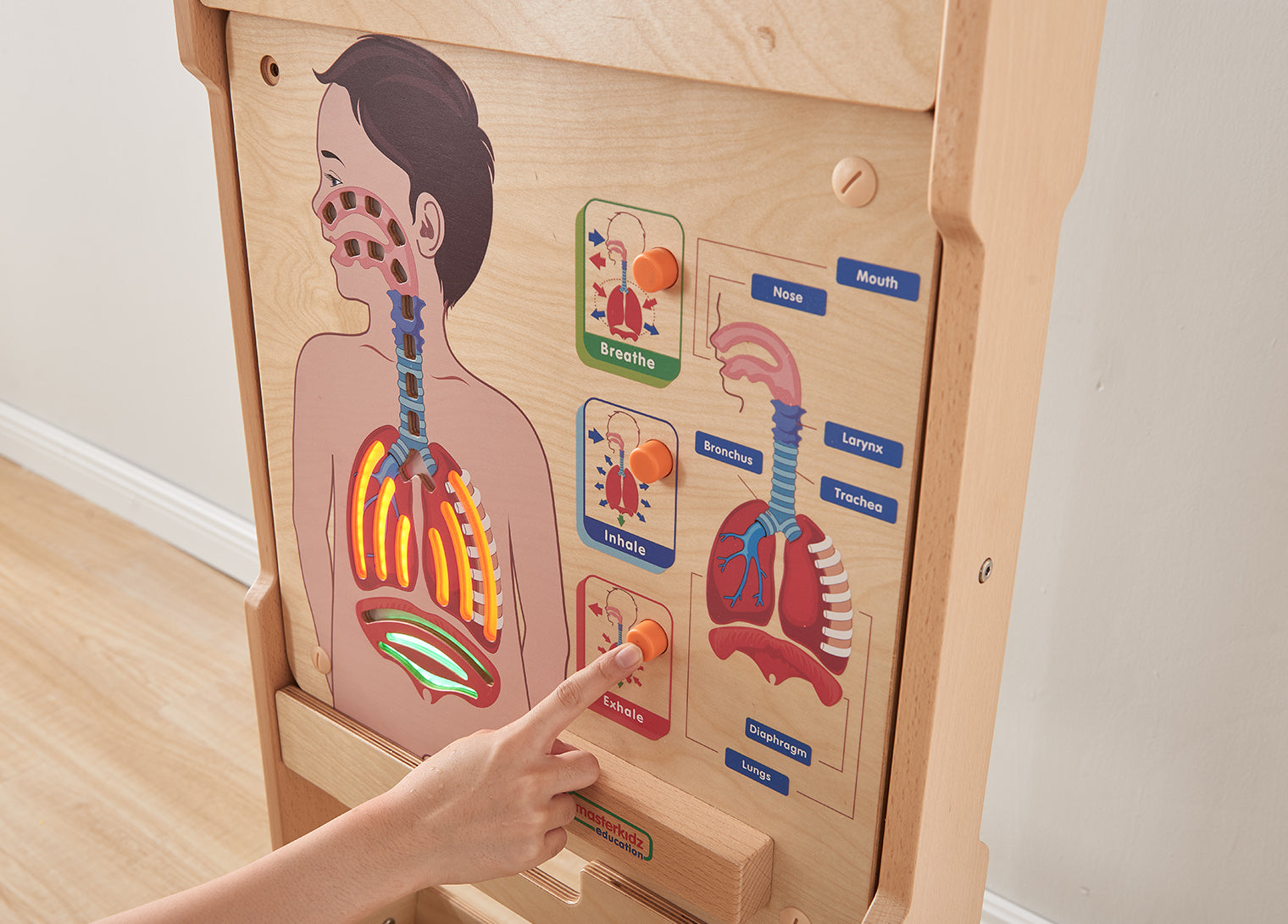- Hands-On Learning – Interactive elements help children visualize how air moves through the body.