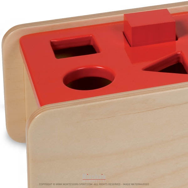 - Includes: Wooden box with shape sorting slots and colorful wooden blocks