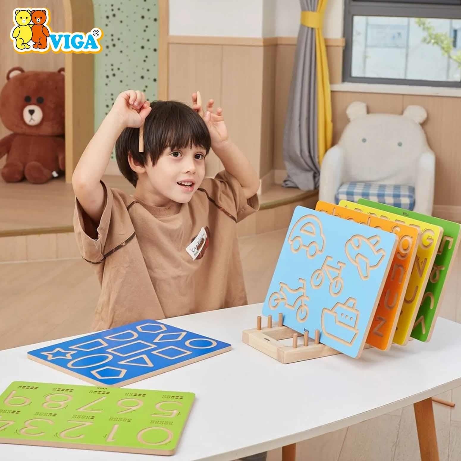 This Tracing Board is designed to help children recognize and practice numbers from 0 to 9. Each digit is carved into the board with directional arrows and dots for counting.